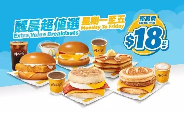 $18起醒晨超值選配飲品(早上4時 – 11時優惠,公眾假期除外,可重複使用)