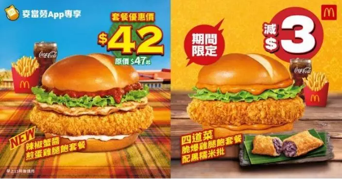 麥當勞 Value Monday 第十二週繼續提供一系列惹味東南亞系列及「麥麥慳」套票,即日起提供新上架優惠「$42 辣椒蟹醬煎蛋雞腿飽套餐」及「四道菜脆爆雞腿飽配黑糯米批套餐減$3」;而由 3 月 23 日起則送上限時「$1 大可樂」優惠,以至抵價品嚐冰涼汽水。