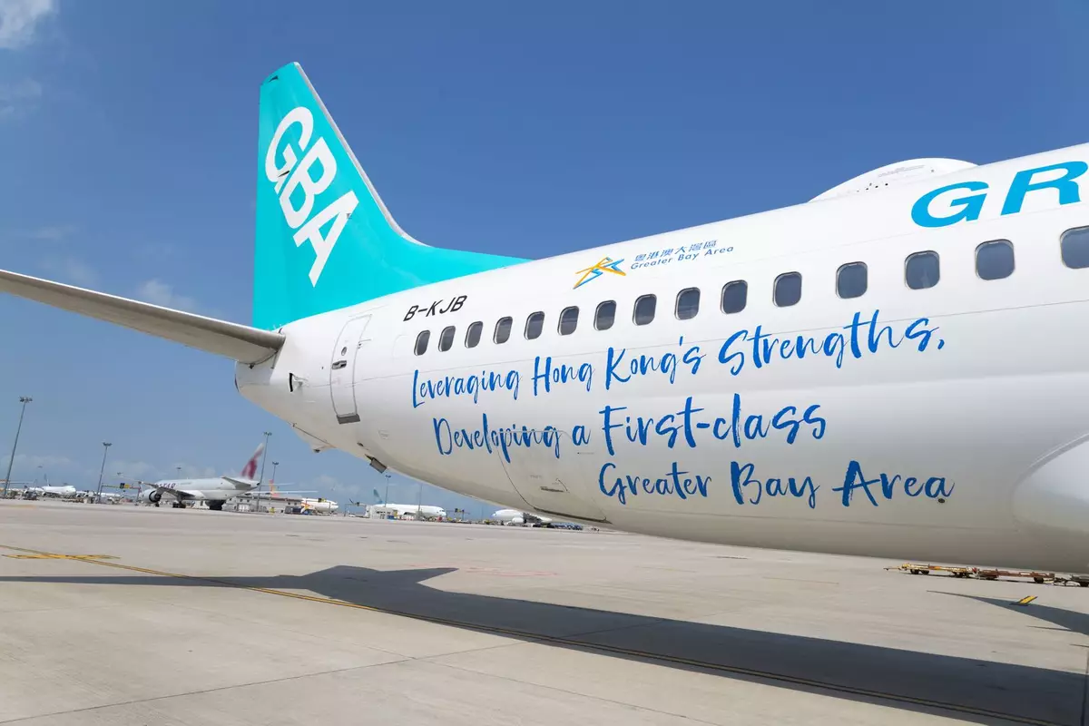大灣區航空第二架印有「發揮香港所長 貢獻灣區所需」標語的「大灣區號」飛機,本月18日投入服務,首飛香港前往內蒙古呼和浩特。