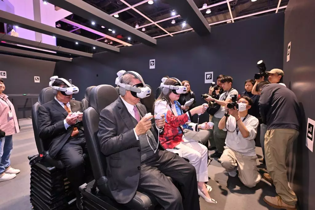 《香港故事之飛躍維港》作為香港首部XR多感官沉浸式電影,日前正式亮相於香港國際影視展,紫荊文化集團總經理文宏武先生、監製丁凱先生、監製及導演姜國民先生,共同迎接香港特別行政區政府政務司司長陳國基、香港特別行政區政府文化體育及旅遊局局長羅淑佩女士、香港貿易發展局主席馬時亨教授、香港貿易發展局影視娛樂業諮詢委員會主席林建岳博士、香港貿易發展局總裁張淑芬女士、等重量級嘉賓率先體驗,象徵官方及業界對這項文旅創新項目的高度支持與認可。
