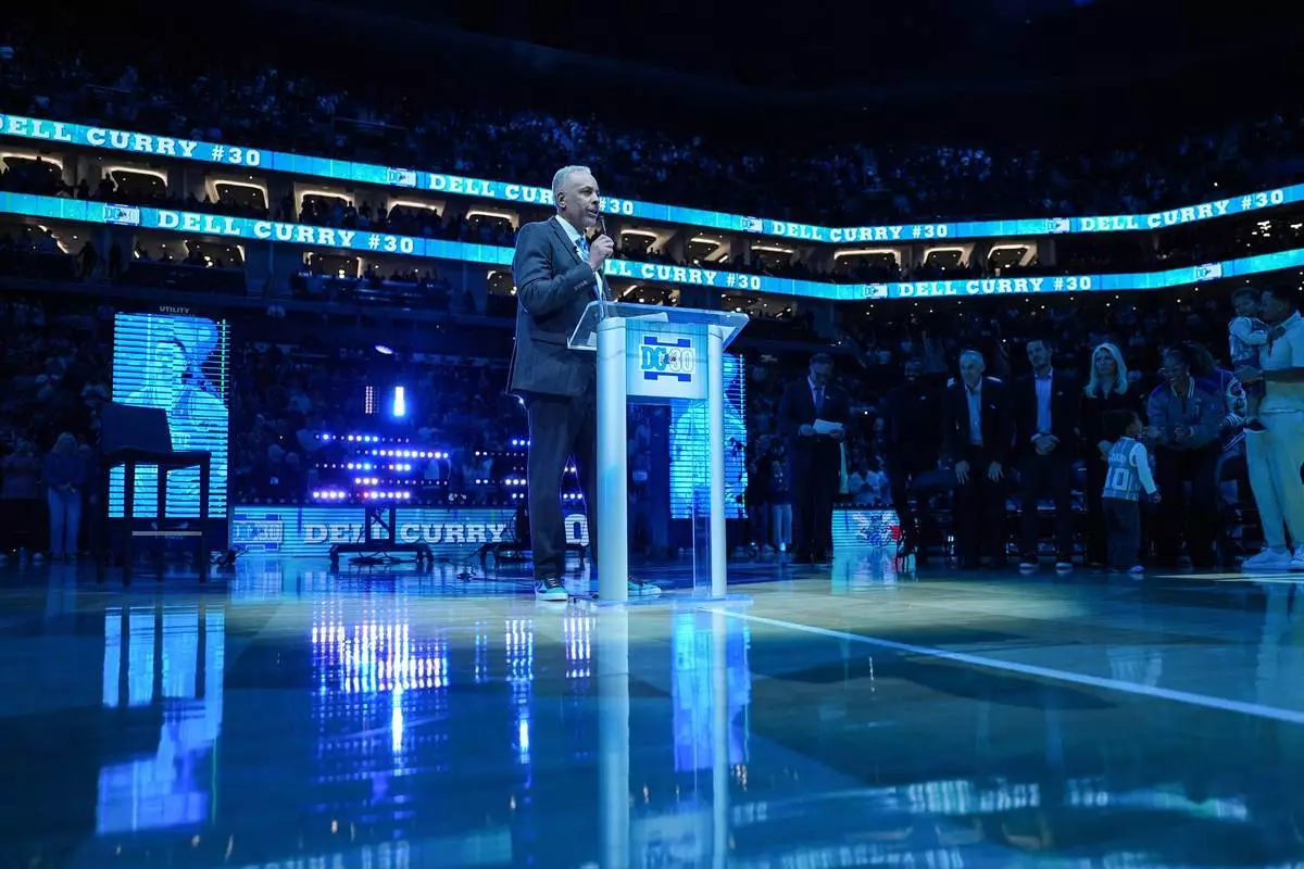 北卡羅來納州夏洛特訊(美聯社)— 戴爾居里(Dell Curry)周四晚強忍喜悅的淚水。他深知這一切即將發生。過去約兩個月,他已得知夏洛特黃蜂(Charlotte Hornets)終將退役他的30號球衣,這件球衣將永遠懸掛在球館上空,以表彰這位1988年擴張選秀中球隊的首選球員。然而,在這一刻,他仍需竭力控制情緒。黃蜂隊在以130比111擊敗奧蘭多魔術(Orlando Magic)的比賽中場休息時舉行了球衣退役儀式,這件球衣最終將與紀念菲爾斯(Bobby Phills)在夏洛特效力時期的球衣並列懸掛。