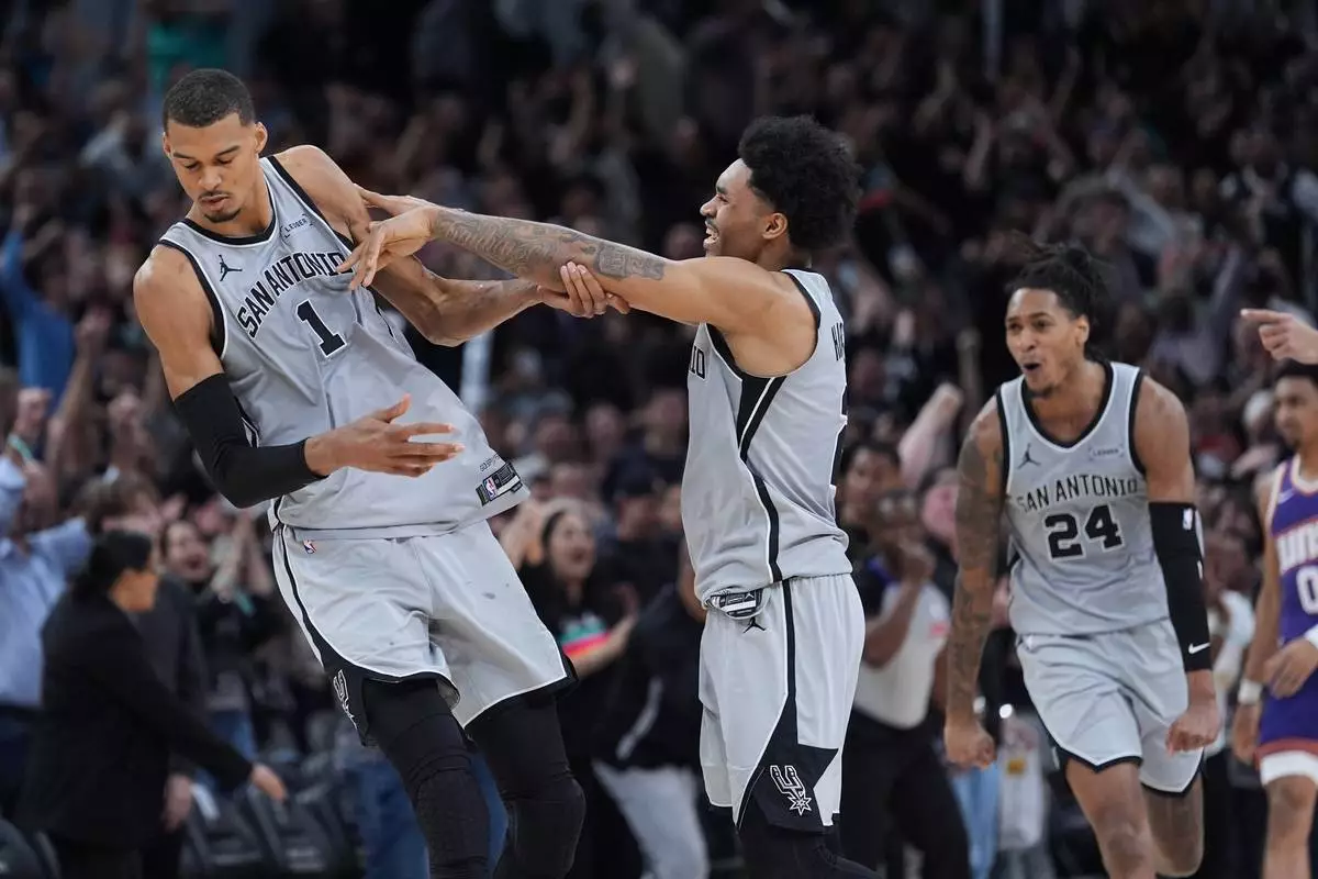 聖安東尼奧(美聯社)— 聖安東尼奧馬刺(San Antonio Spurs)周四晚憑藉文班亞馬(Victor Wembanyama)在比賽剩下最後一秒時射入一個約5.2米的急停跳投,以101比100險勝鳳凰城太陽(Phoenix Suns),成功鎖定季後賽席位,終結了長達六個賽季的季後賽荒。