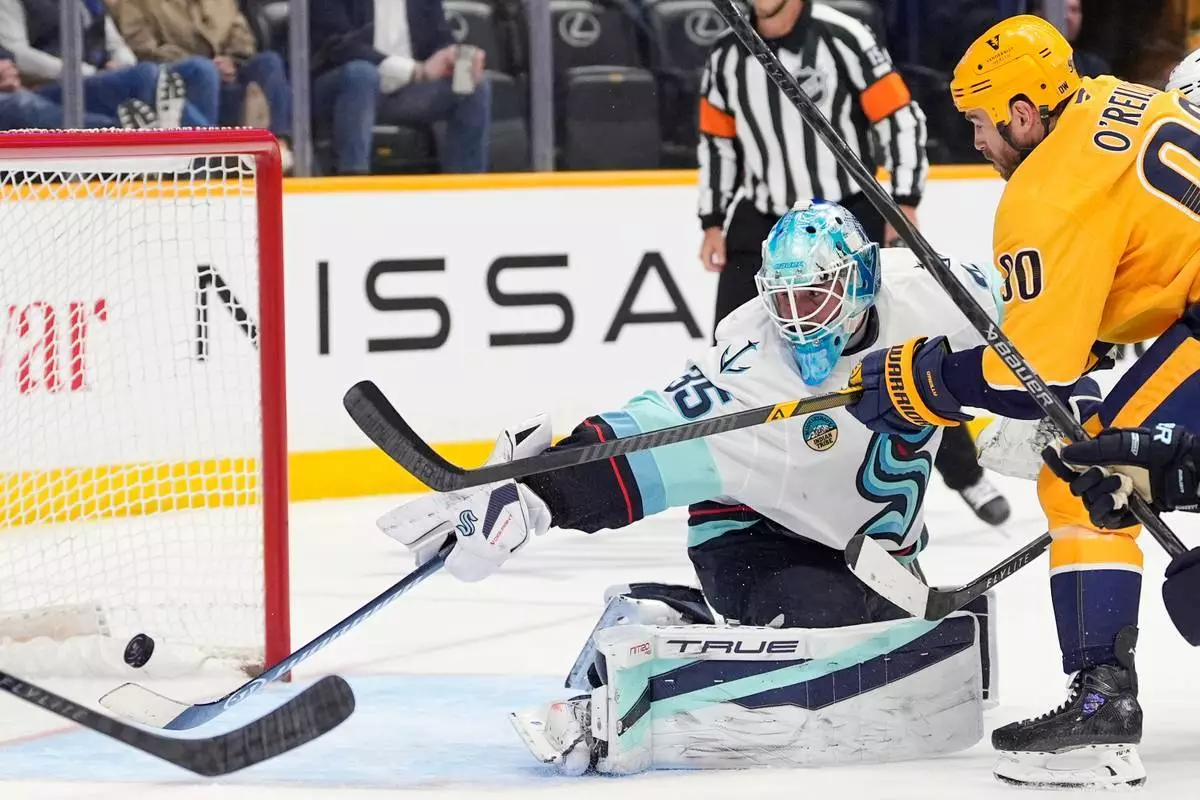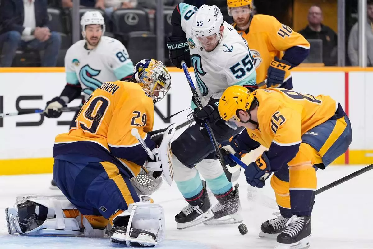 田納西州納許維爾(NASHVILLE, Tenn.)(美聯社)— 費斯伯格(Filip Forsberg)貢獻一球兩助攻,加上安努寧(Justus Annunen)成功撲救25次,帶領納許維爾掠奪者隊(Nashville Predators)在周四晚的國家冰球聯盟(NHL)賽事中,以3比1擊敗西雅圖海怪隊(Seattle Kraken)。兩隊目前正爭奪西岸外卡席位。