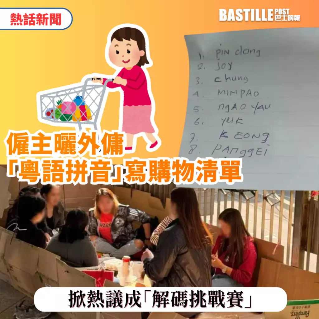 近日有僱主在Facebook群組《外傭僱主必看新聞訊息》發帖,分享自家外傭以廣東話拼音書寫的購物清單,意外在群組內掀起一輪「解碼」挑戰,引發網民熱烈討論。