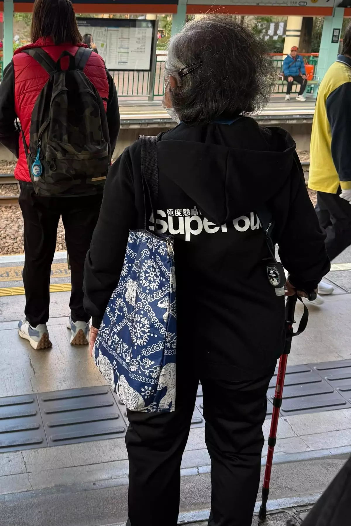 雖然說不知者無罪,不過有時因為不知亦會鬧出不少笑話。日前就有網友在輕鐵月台候車,驚見前方一位拄拐杖的婆婆身穿黑色連帽外套,背面竟然印有大大隻四字粗口「極度戇X」,網友拍下這一幕之後在Threads發帖,爆笑問:「邊個乖孫玩X嫲嫲?」帖文一出引來網民熱議。