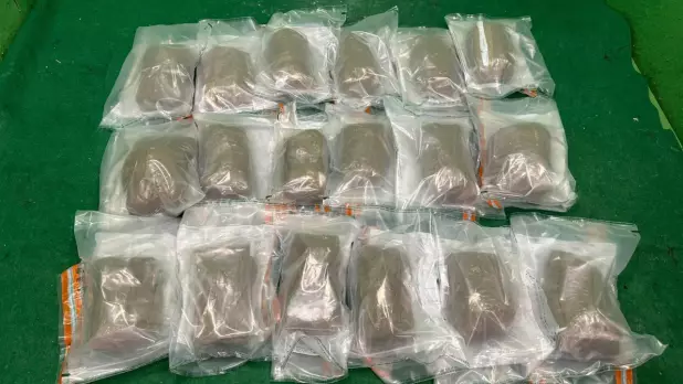 第二宗案件中,一名19歲的男旅客昨日從德國法蘭克福飛抵本港,海關在其寄艙行李內膠袋中發現重約18公斤、並以膠帶纏繞的懷疑氯胺酮,估計市值約720萬元,該男子隨即被捕。