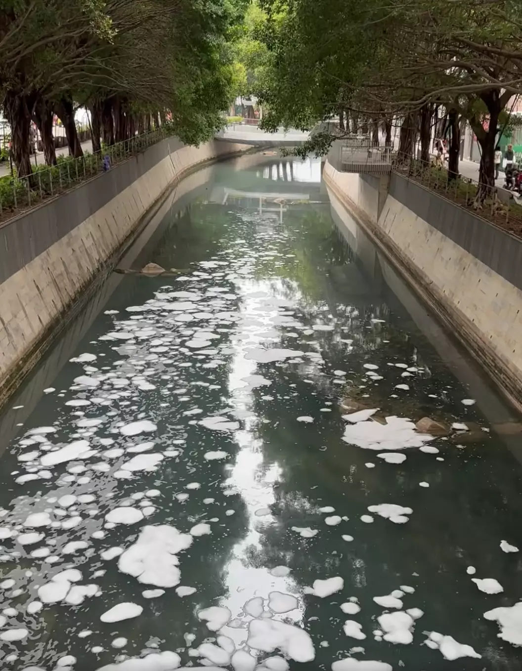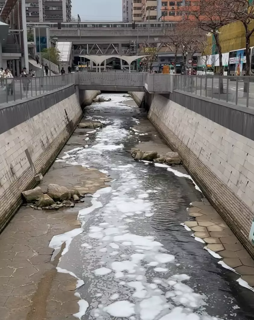 網上流傳一段影片,觀塘明渠翠屏河突然變成「泡泡河」,引發熱議。環保署回應傳媒查詢時表示,下午接獲報告後已立即展開調查。