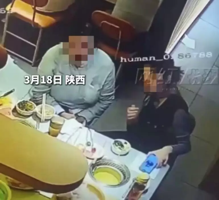 近日,陝西火鍋店一名女食客用餐期間因一時手滑意外導致手機跌入火鍋內。閉路電視畫面可見,女子當時正在吃火鍋,期間伸手取用手機時疑一時失手,導致手機直接跌入熱鍋中。店員發現後即時上前協助,並遞上紙巾供對方清理。