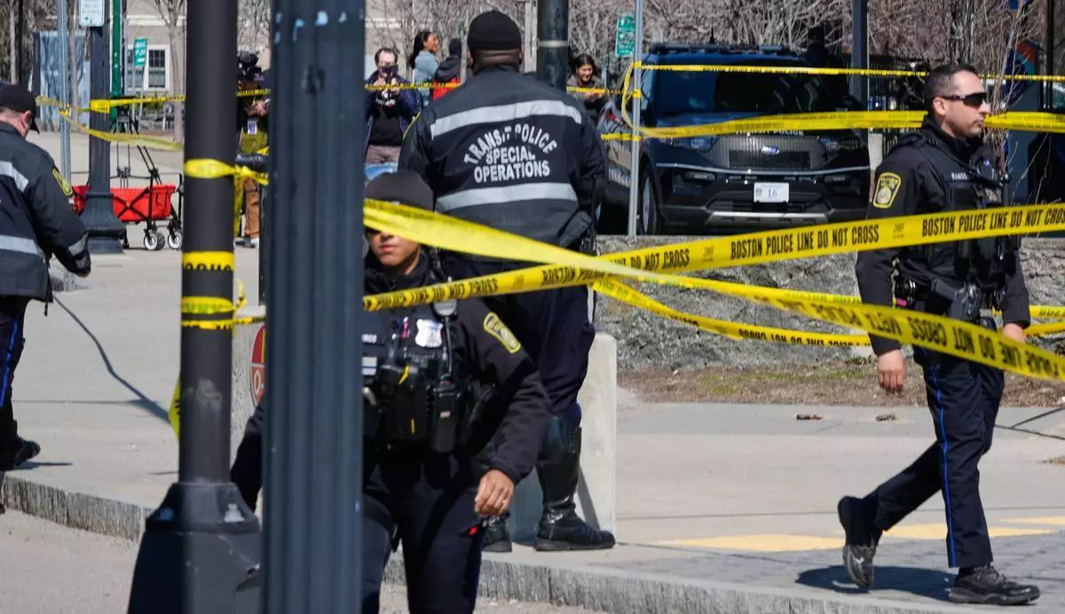 執法人員於2026年3月20日周五,在波士頓牙買加平原區(Jamaica Plain neighborhood)的森林山車站(Forest Hills station)處理犯罪現場。(美聯社圖片/Charles Krupa) AP圖片