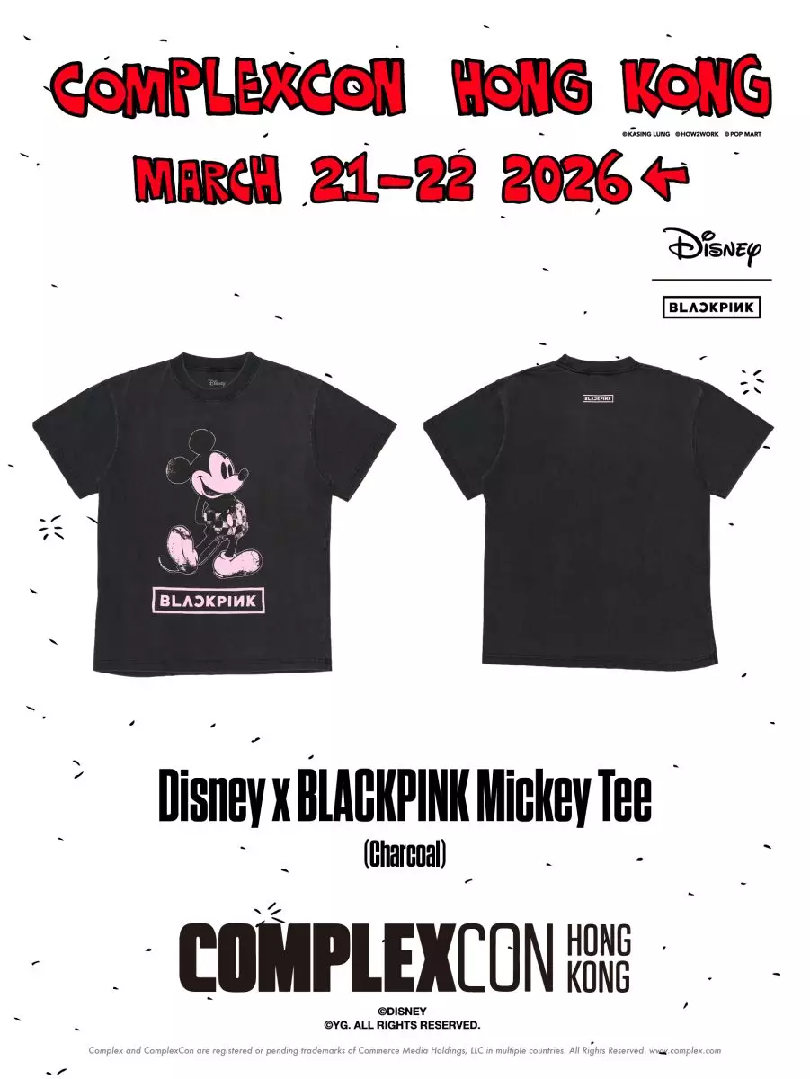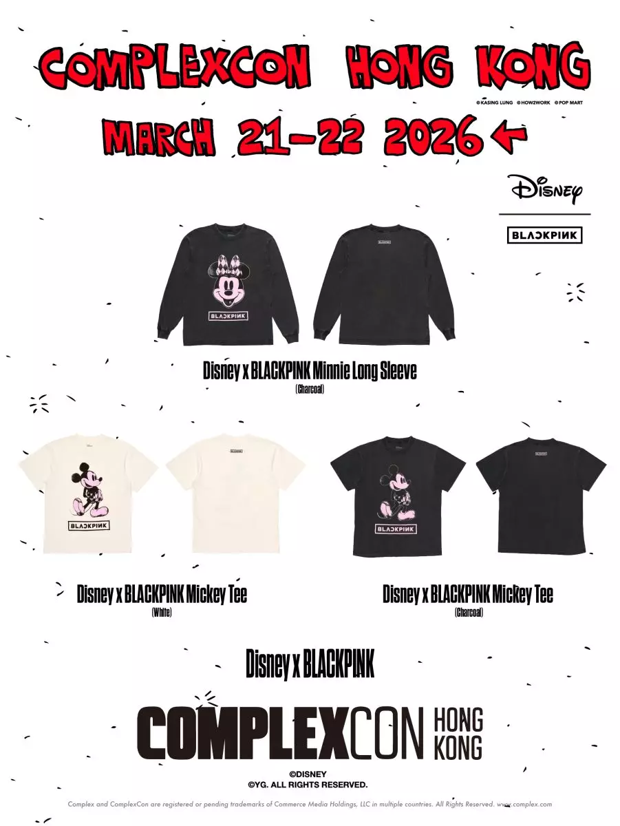 在創下多項紀錄的世界巡迴演唱會及推出全新迷你專輯後,BLACKPINK攜手 Disney 與 Complex 推出一組龐克風格限量膠囊系列,將音樂、時尚與經典文化融合,帶來耳目一新的跨界合作。系列單品現已於 Complex.com 獨家發售,購買即可獲贈一張 BLACKPINK 收藏小卡。精選單品更將於 3 月 21 日至 22 日亮相 ComplexCon 香港 2026 活動現場限量發售。