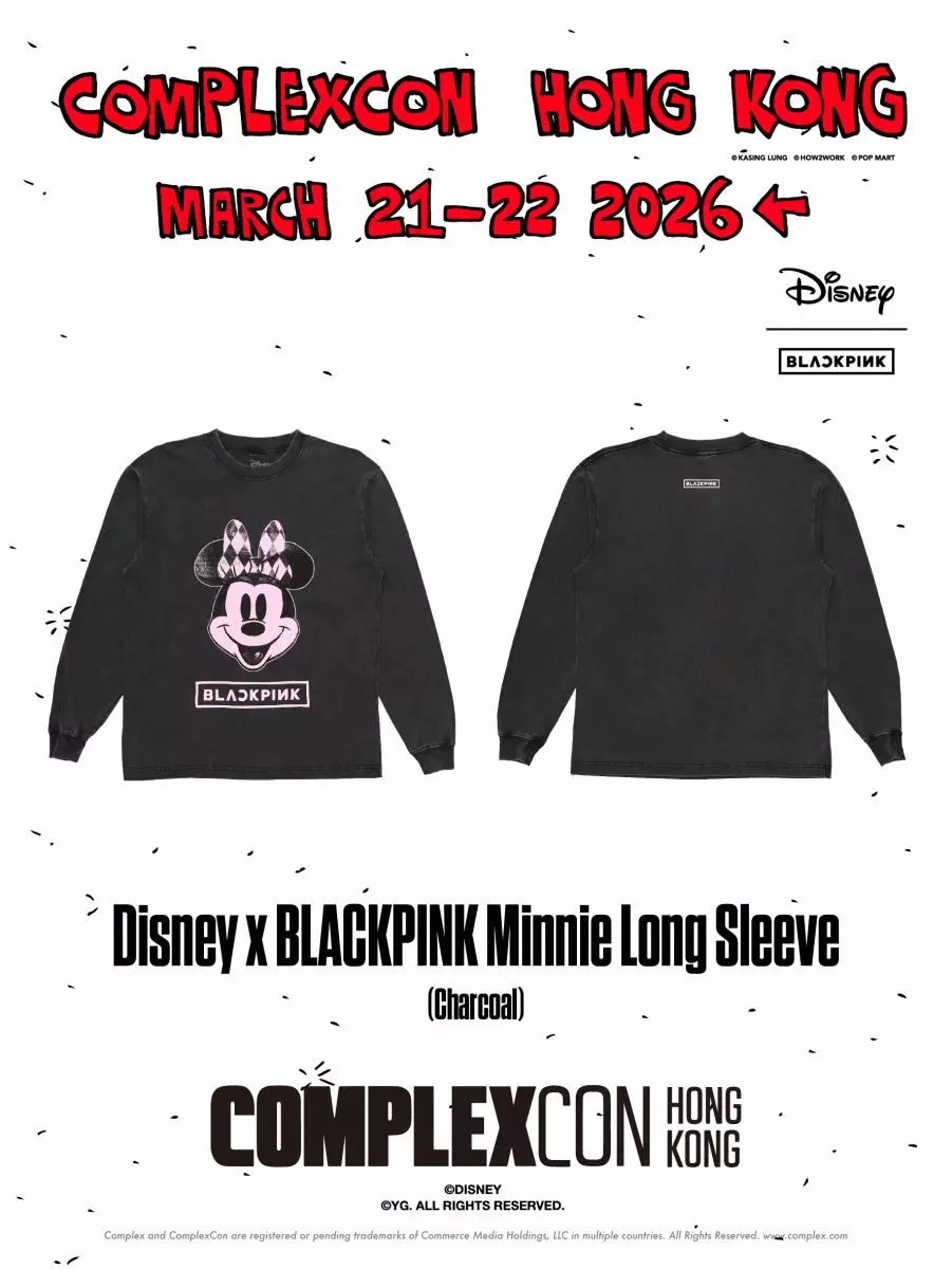 今次膠囊系列亦象徵著 Complex 與 Disney 在服飾領域持續合作的序幕,未來,Complex 將以其敏銳的文化洞察與鮮明的創意視角,繼續帶來創新的文化表達與獨特價值。Disney | BLACKPINK 系列現已於 Complex.com 獨家發售,精選單品將於 3 月 21 日至 3 月 22 日在 ComplexCon 香港 2026 現場限量發售。