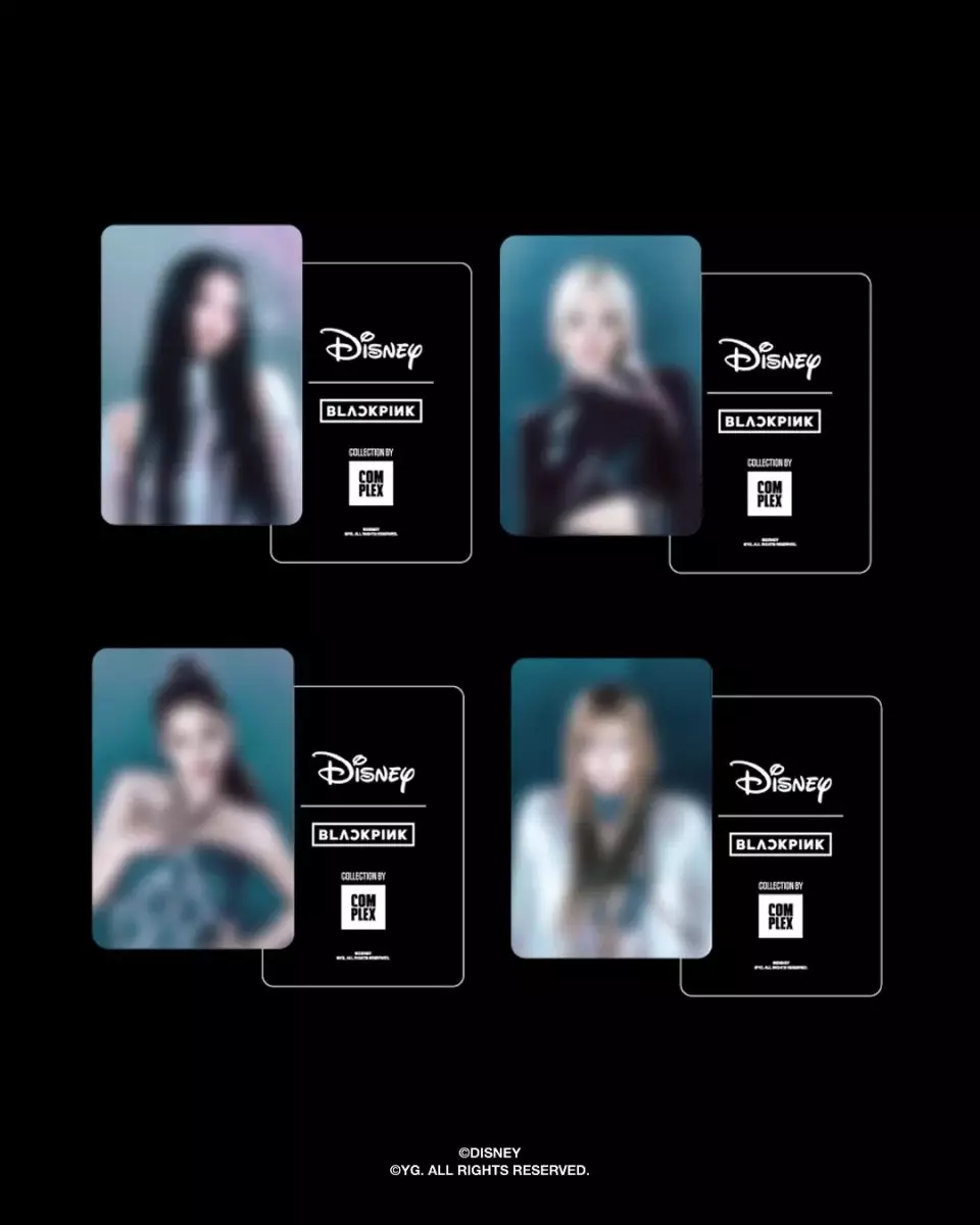為慶祝本系列的發布,Disney、Complex 與 BLACKPINK 特別打造專屬收藏小卡,作為訂單隨附的限量紀念品贈予消費者。購買本系列的粉絲將隨機獲得印有 JISOO、JENNIE、ROSÉ 或 LISA 形象的收藏小卡,讓每一次購買都成為值得珍藏的體驗。這項特別贈禮不但突顯 BLACKPINK 的獨特魅力,也為本次合作增添別具紀念價值的意義。