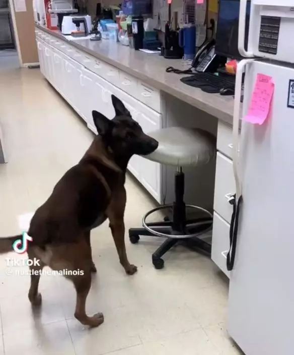Krista表示,Turbo幾乎每天晚上都會上演一場「伏匿匿」,令診所職員每次都要花上不少時間四處尋找。由於大家早已被牠「玩怕」,她最終決定使出「殺手鐧」,派出自己飼養的比利時牧羊犬Hustle協助尋貓。