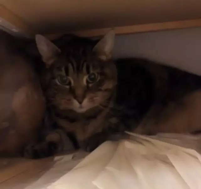 綜合外媒報導,美國肯塔基州一名獸醫診所女職員Krista早前於社交平台上分享一起趣味十足的「貓咪失蹤」事件。她指出,一隻名為Turbo的虎斑貓生性頑皮,幾乎每晚都會突然「失蹤」,與工作人員大玩捉迷藏。由於眾人屢次遍尋不獲,最終只好請出「追蹤犬」協助搜查,果然一下子便找到牠。惟Turbo被發現時一臉不悅,逗趣模樣令相關影片在網上迅速爆紅。