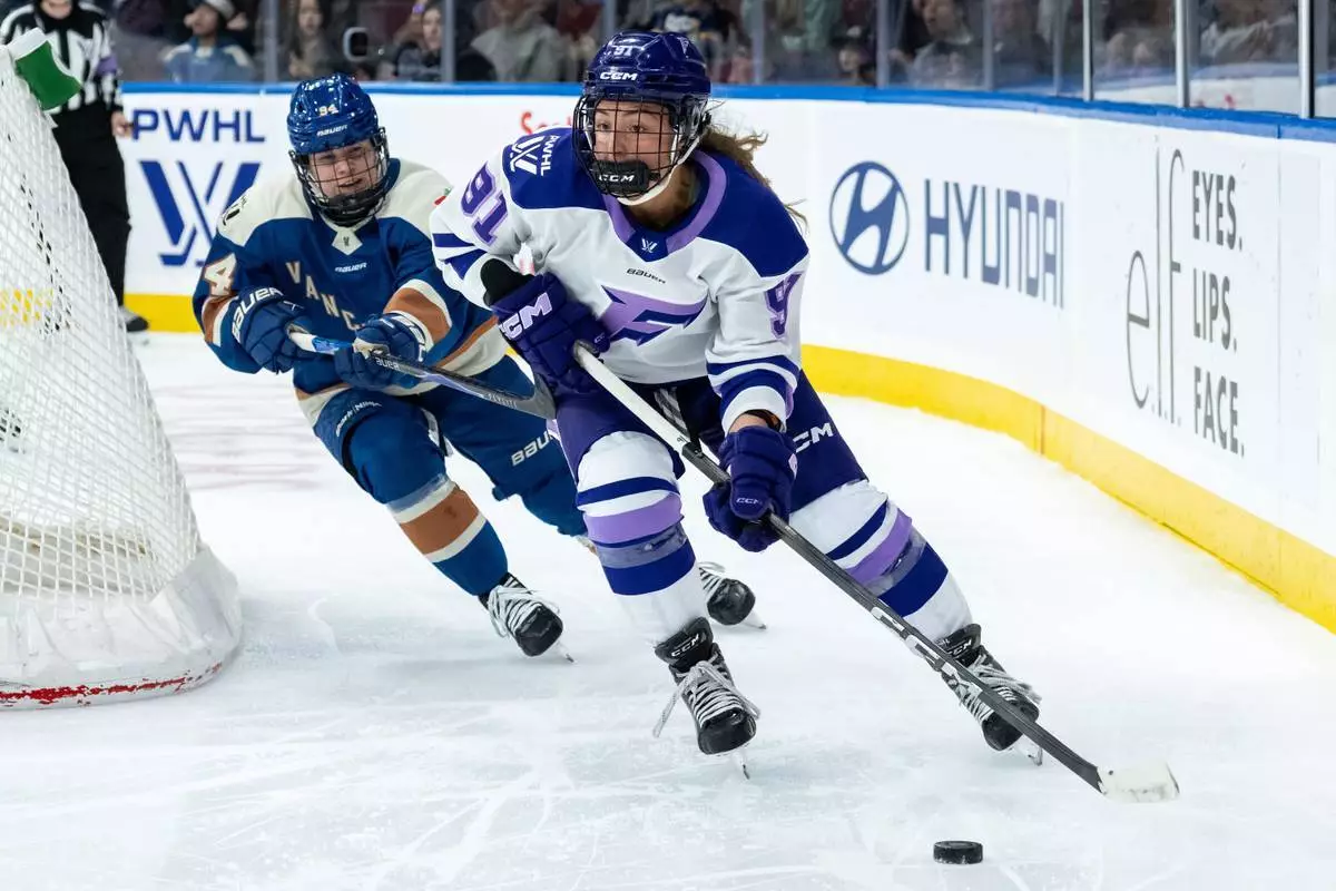 新澤西魔鬼隊中鋒曉士(Jack Hughes)(86號)在2026年3月20日周五於華盛頓舉行的一場國家冰球聯盟(NHL)賽事下半場,帶球滑過華盛頓首都人隊右翼貝奧維利爾(Anthony Beauvillier)(72號)。 (美聯社圖片/Nick Wass) AP圖片