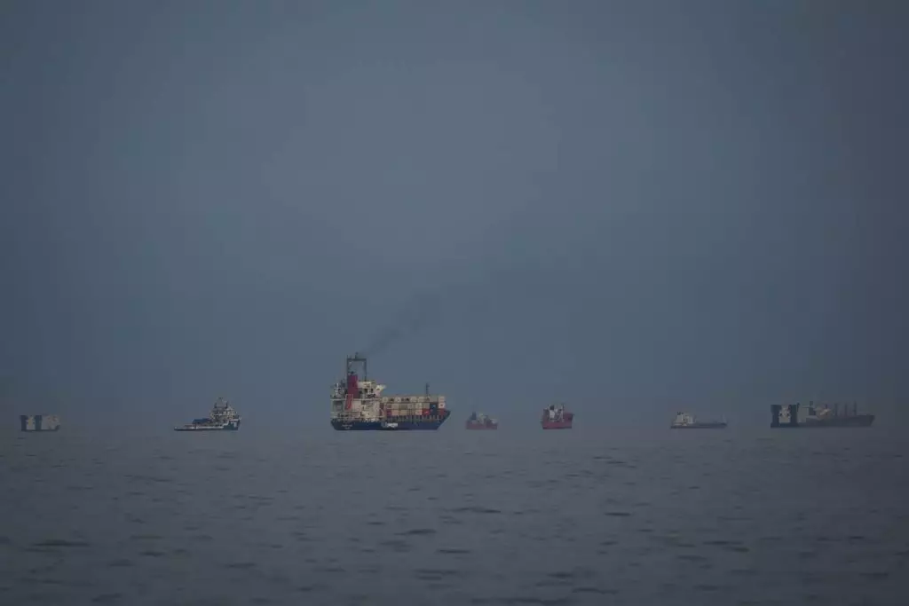 油輪及貨船在霍爾木茲海峽排隊。AP圖片