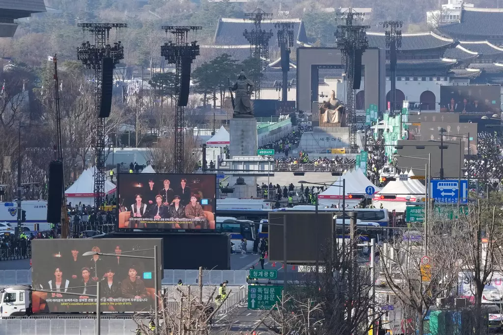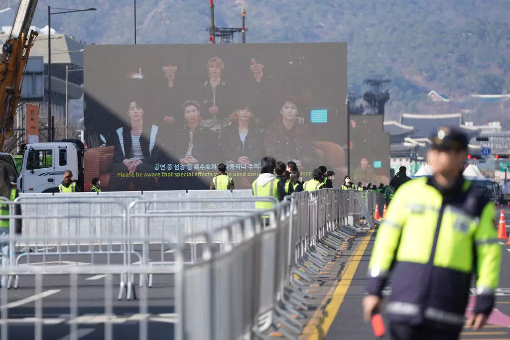 K-pop天團BTS周六(21日)在首爾舉行大型免費回歸演唱會,當局部署15000人負責保安工作。AP圖片