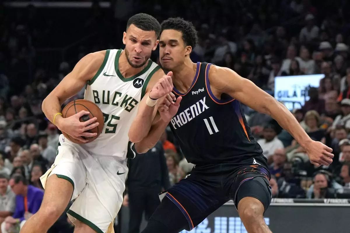 鳳凰城(美聯社)— 密爾沃基公鹿(Milwaukee Bucks)周六晚在缺少主將下,憑賴恩路連斯(Ryan Rollins)貢獻26分及10個籃板,加上基爾古斯馬(Kyle Kuzma)傷出前攻入20分,最終以108比105險勝鳳凰城太陽(Phoenix Suns),令太陽隊吞下五連敗。
