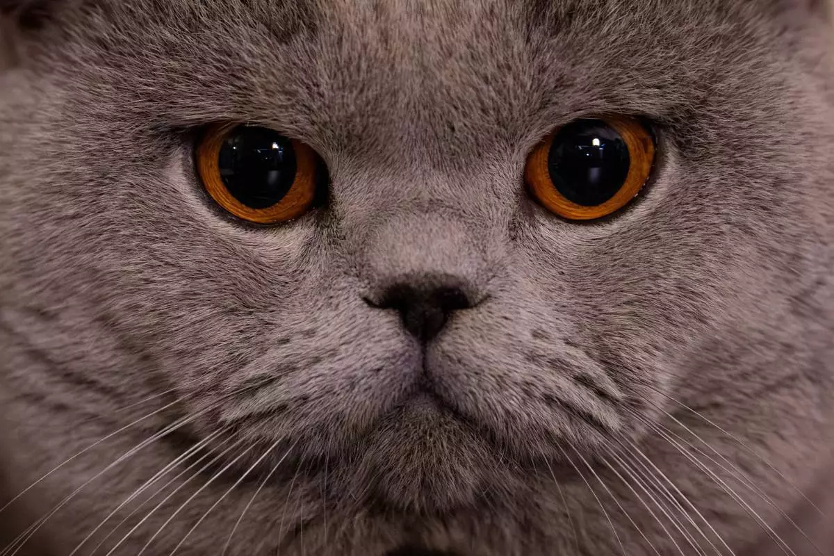 一隻名為甘道夫(Gandalf)的英國短毛貓,在羅馬尼亞布加勒斯特舉行的「貓咪奧斯卡」國際貓咪選美大賽評審環節中凝視。該比賽於2026年3月21日(周六)舉行,吸引逾200隻貓咪參與。(美聯社圖片/Vadim Ghirda) AP圖片