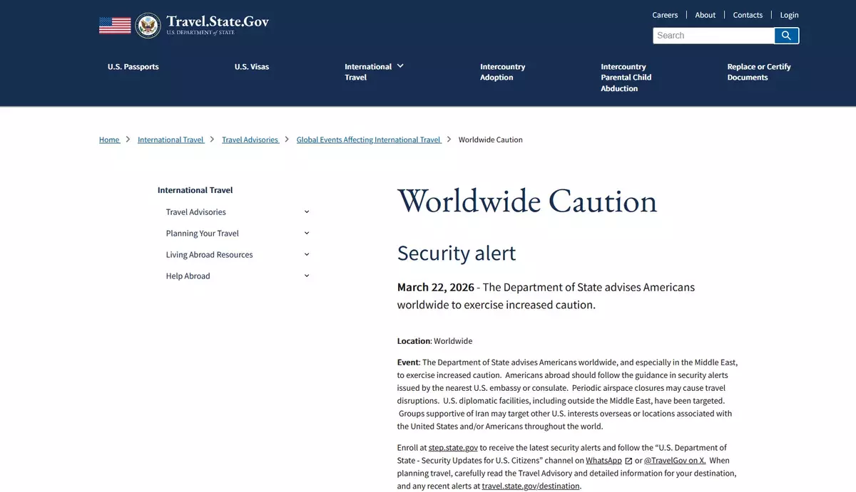 美國國務院發布警告,建議全球各地的美國公民,特別是身處中東地區的公民提高警惕。警告指出,中東以外地區的美國外交機構已成為襲擊目標,支持伊朗的團體可能襲擊美國在海外的利益、全球範圍內美國相關場所或美國公民。