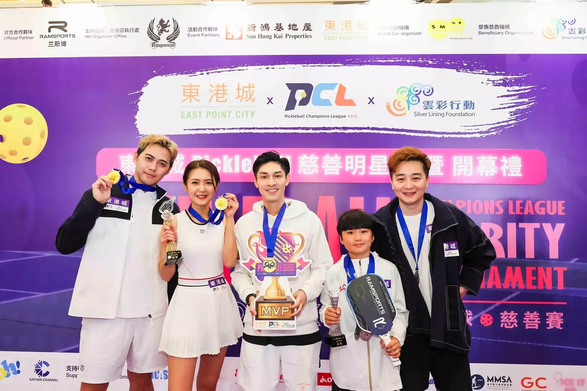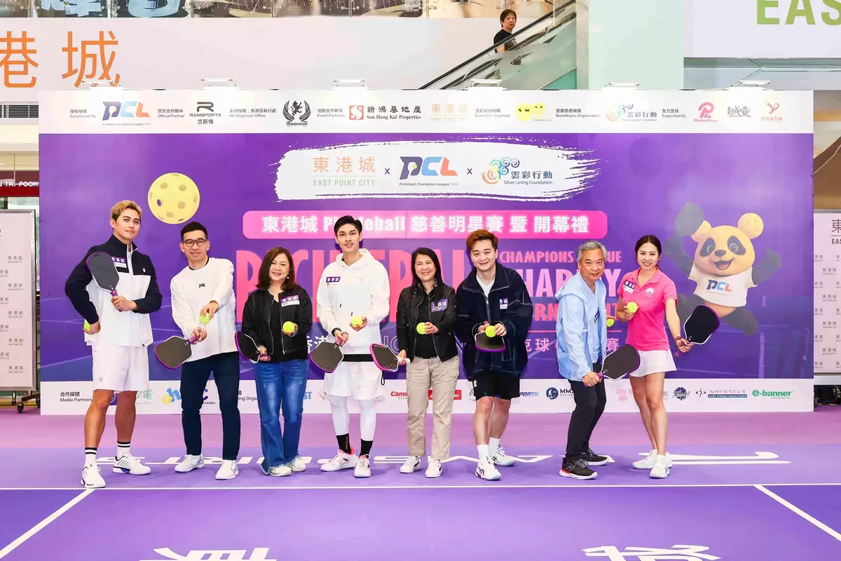 近年全球捲起Pickleball匹克球狂熱,這款新興球類運動火速瘋魔香港男女老幼,熱潮正蔓延至東港城!東港城搖身一變成為專業室內匹克球場,並聯同Pickleball Champions League(PCL)及慈善機構「雲彩行動」攜手舉辦長達一個月的「2026香港匹克球慈善賽」,由即日起上演70場專業級匹克球比賽!為隆重其事,更昨今(3月22日)天假東港城一樓中庭別舉行「Pickleball慈善明星賽暨開幕禮」,除了邀請到「活動大使」譚輝智、關楚耀和許俊豪出席開球禮,三人更率領藝人劉威煌、羅逸軒、陳庭欣、邵珮詩等組成四支匹克球明星隊伍出戰今天的慈善明星賽,眾人的打波英姿不單止令粉絲瘋狂尖叫,更吸引大批現場觀眾駐足圍觀,掀起活動高潮!
