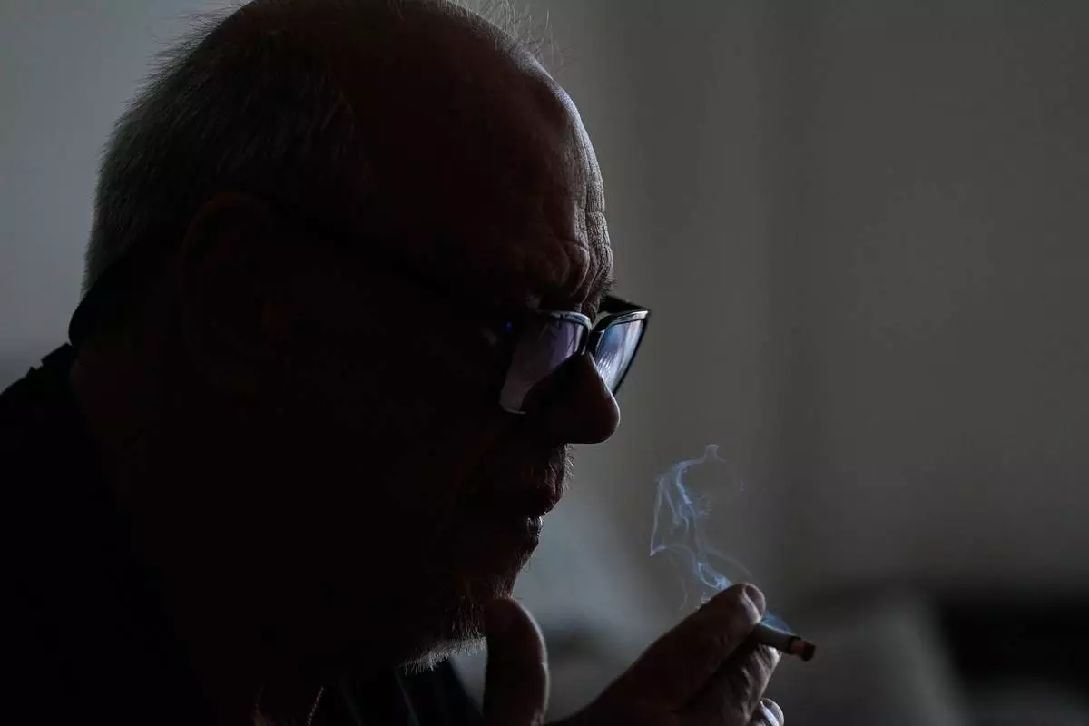 2026年3月13日周五,前陸軍下士兼前反顛覆狙擊手部隊指揮官胡安·曼努埃爾·吉勞德(Juan Manuel Giraud),在阿根廷布宜諾斯艾利斯(Buenos Aires)的公寓中點燃香煙。他因2022年被判在1976年軍事行動中殺害游擊隊成員,目前正居家服無期徒刑。 (美聯社圖片/娜塔莎·皮薩連科 Natacha Pisarenko) AP圖片