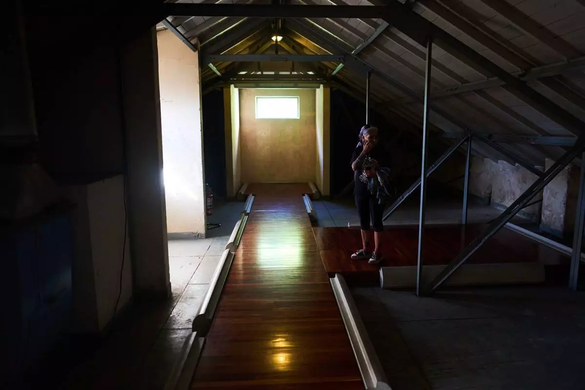 2026年3月18日周三,一名訪客走過阿根廷布宜諾斯艾利斯(Buenos Aires)ESMA(前海軍機械學校)的「capucha」區域。該處在軍事獨裁時期曾是非法拘留中心,囚犯在此被蒙頭及施以酷刑,現已改建為記憶空間與人權促進及捍衛博物館。 (美聯社圖片/羅德里戈·阿卜德 Rodrigo Abd) AP圖片