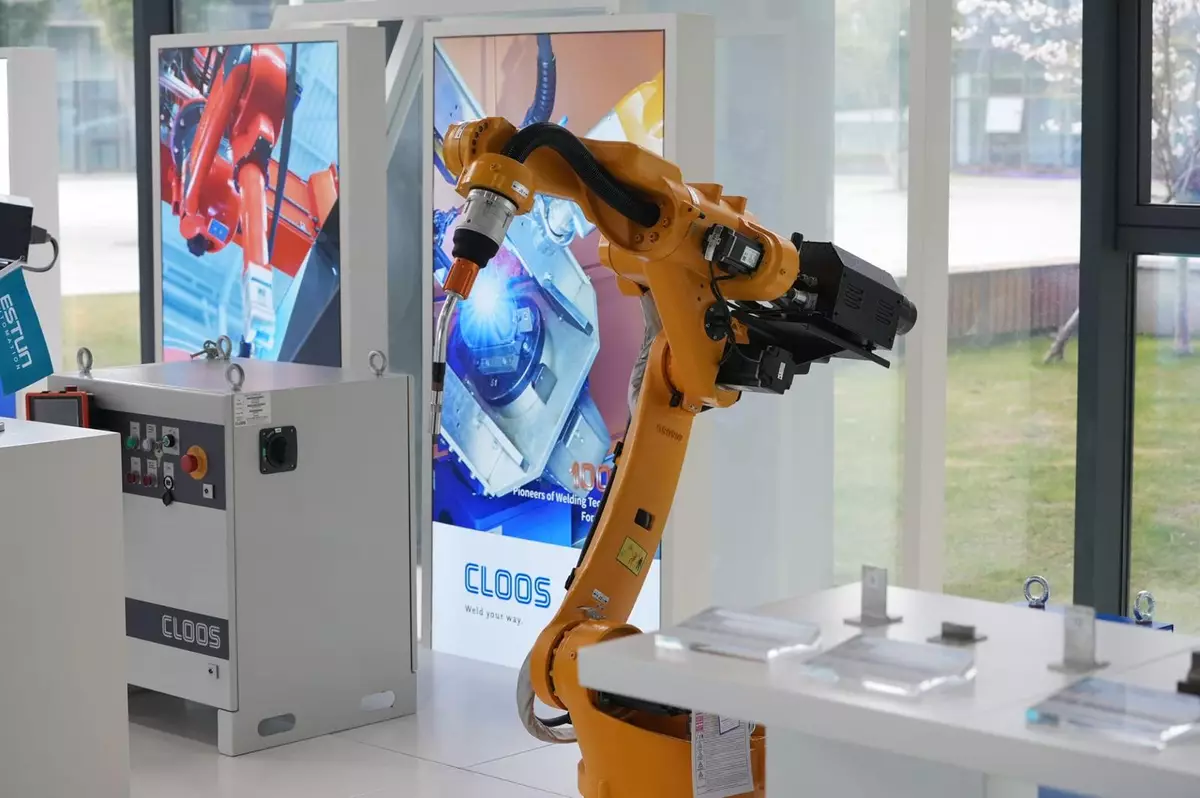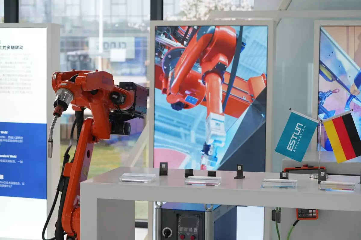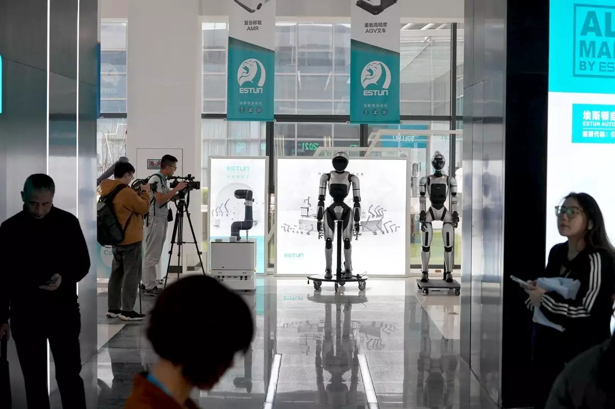 展廳講解人員介紹,公司1993年創立於南京,2001年研發出首台國產交流伺服驅動器,打破日本與歐洲品牌的壟斷局面。隨後於2010年推出首台工業機械人,並在2015年於深交所上市,今年3月再登陸港交所。為滿足市場需求,公司建設佔地180畝的機械人智能產業園,該園區分兩期建設,已於2023年全面投入使用。