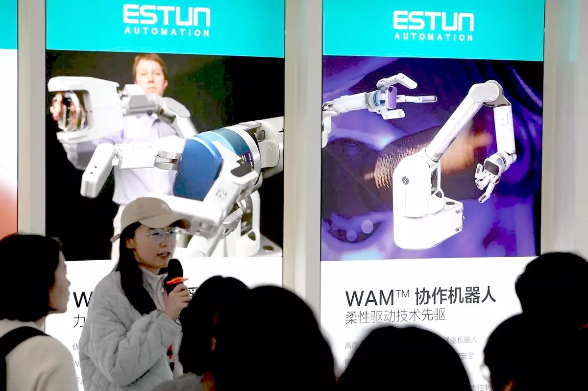 講解員介紹細分行業定制產品,透過「通用+細分」策略擴大自動化應用。巴士的報記者攝