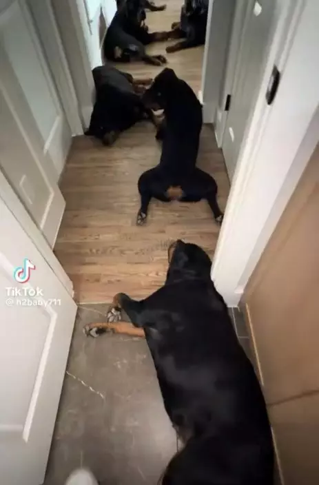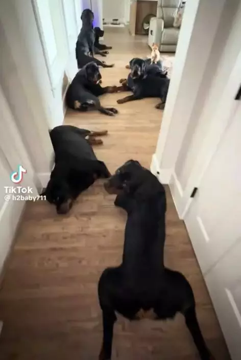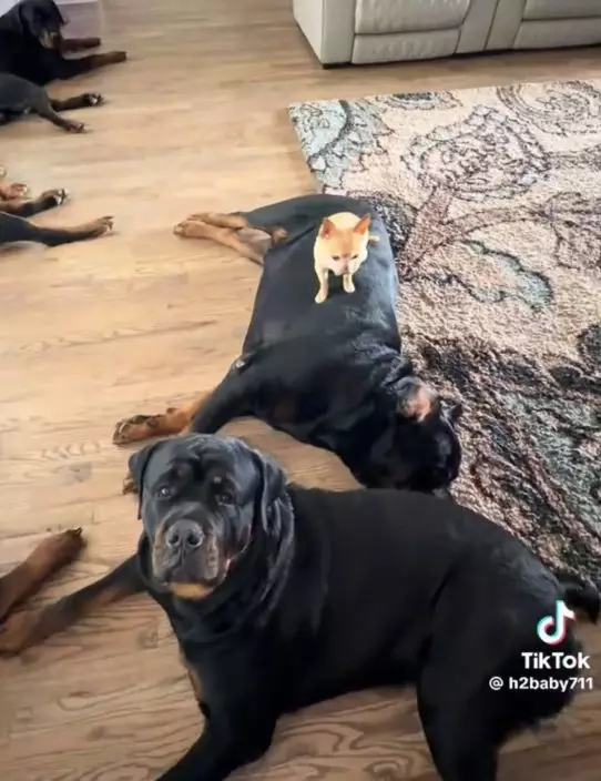 日前,國外一名男飼主魯本(Ruben)於TikTok上分享一段家中寵物犬陣容,因畫面反差極大而在網上引起關注。據悉,飼主家中飼養了9隻外形兇猛的羅威納犬,當牠們一字排開坐著時氣勢十足,當中竟混入一隻體型嬌小的吉娃娃犬,這隻吉娃娃犬直接伏在其中一隻大狗身上,神態自信猶如是這個「猛犬軍團」的領袖般,令人啼笑皆非。