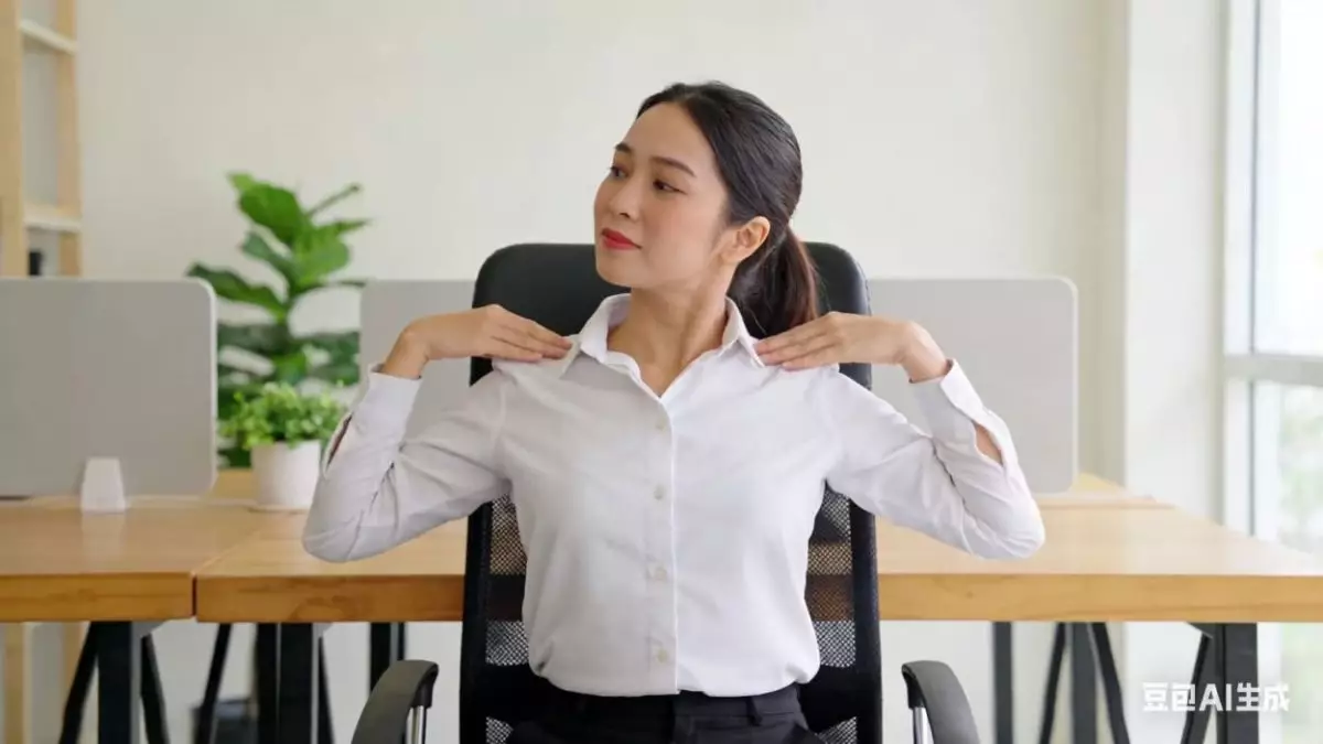 慢慢聳肩、向後繞肩,再輕輕左右轉頭,有助紓緩久坐後的繃緊感。