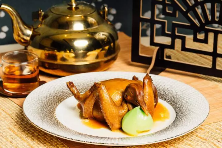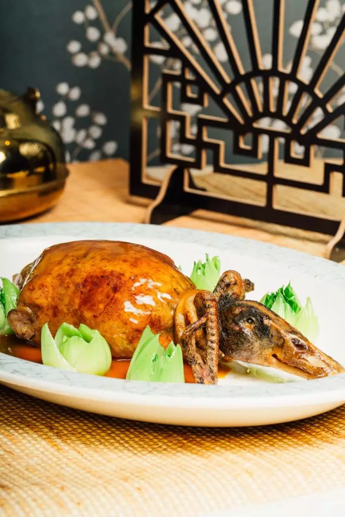 選用肉質細嫩的水鴨,釀入香氣馥鬱的「八寶」餡料,經繁複工序蒸製後,再以鴨身原汁調煮入味。外酥內嫩,層次分明,展現江南菜系的精緻與粵菜的火候創新。