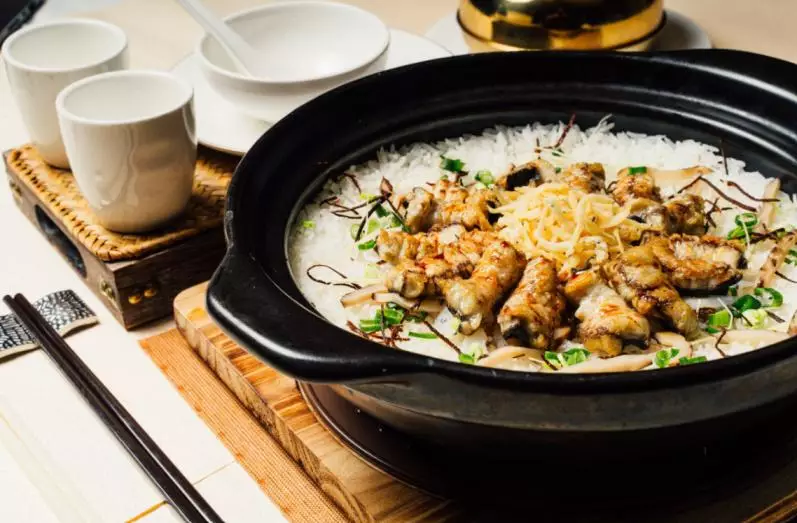 承襲自台山、被列入非物質文化遺產的經典。以新鮮黃鱔與銀魚入饌,於砂煲中與米飯一同文火慢煮,淋上特製醬汁焗至飯面微焦。揭蓋時飯香、魚香、焦香交織,底層更有香脆「飯焦」。