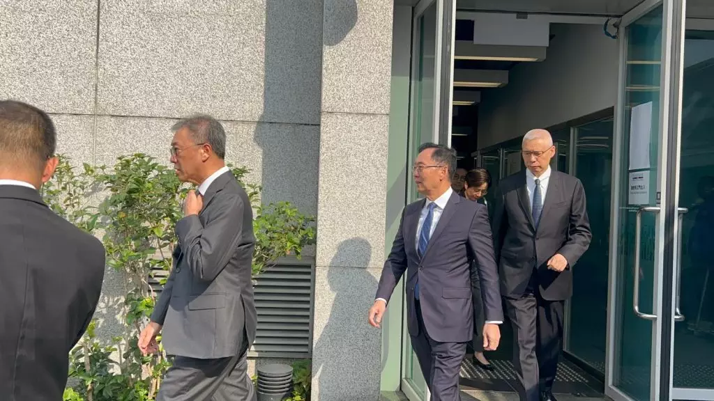 獨立委員會主席陸啟康(左)及其他成員離開。巴士的報記者攝
