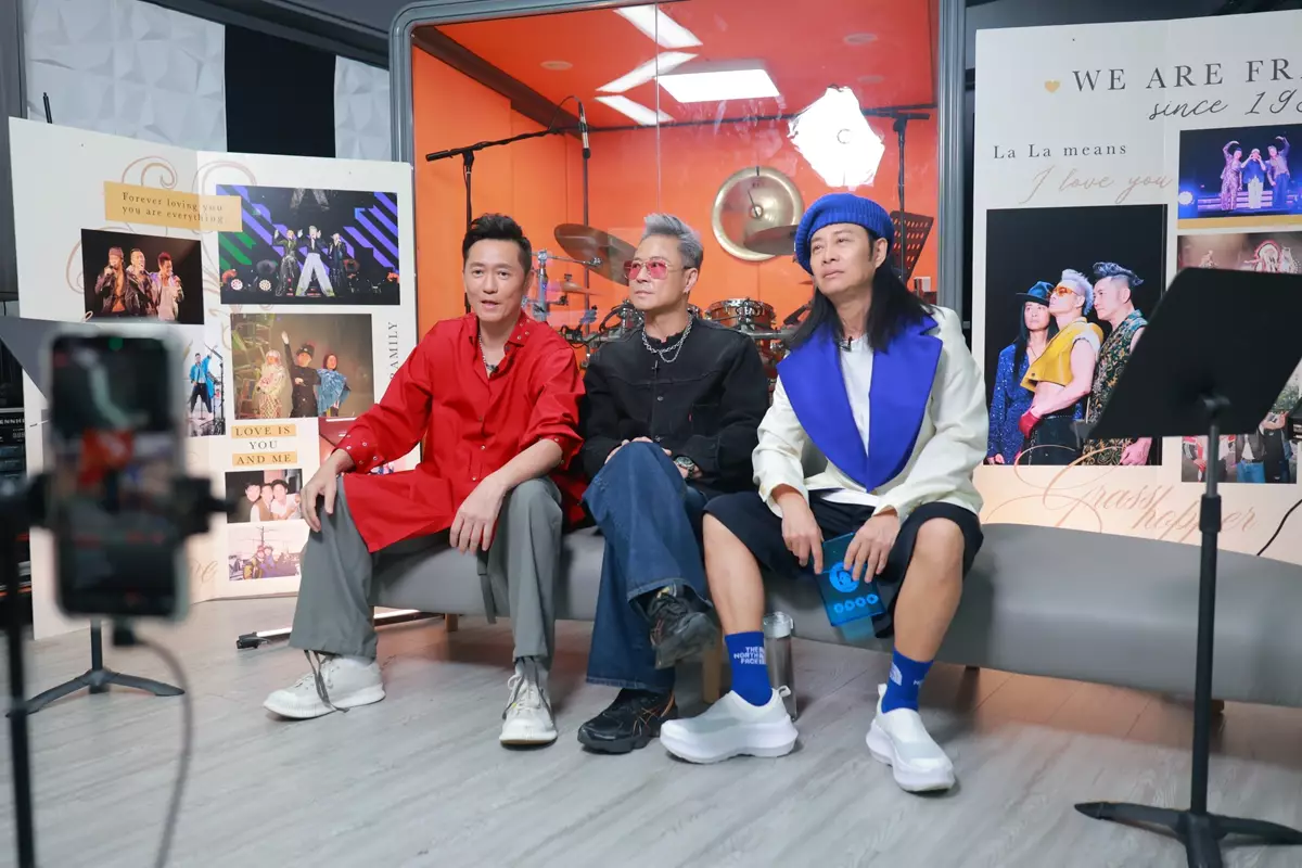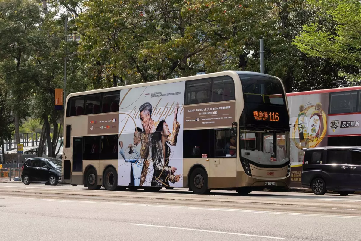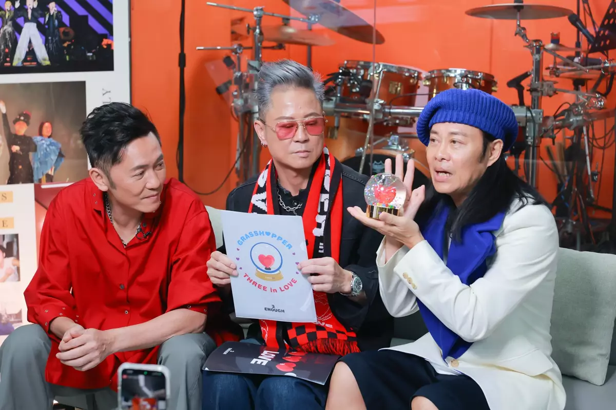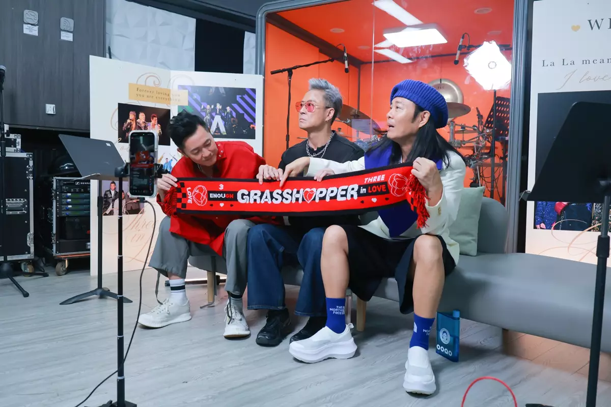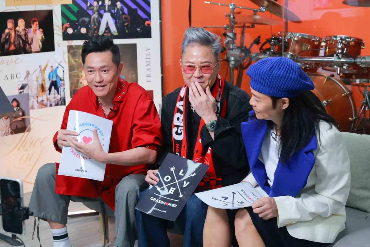 「GRASSHOPPER THREE IN LOVE CONCERT 草蜢演唱會2026」將於下月在紅館開鑼,反應熱烈,早前宣布加開4月26日場次,宣傳攻勢繼續升溫,銅鑼灣、尖沙咀、旺角等十個LED幕牆MV及廣告讓Fans打卡,還有海報巴士走勻全港,慶祝草蜢成軍40周年演唱會。