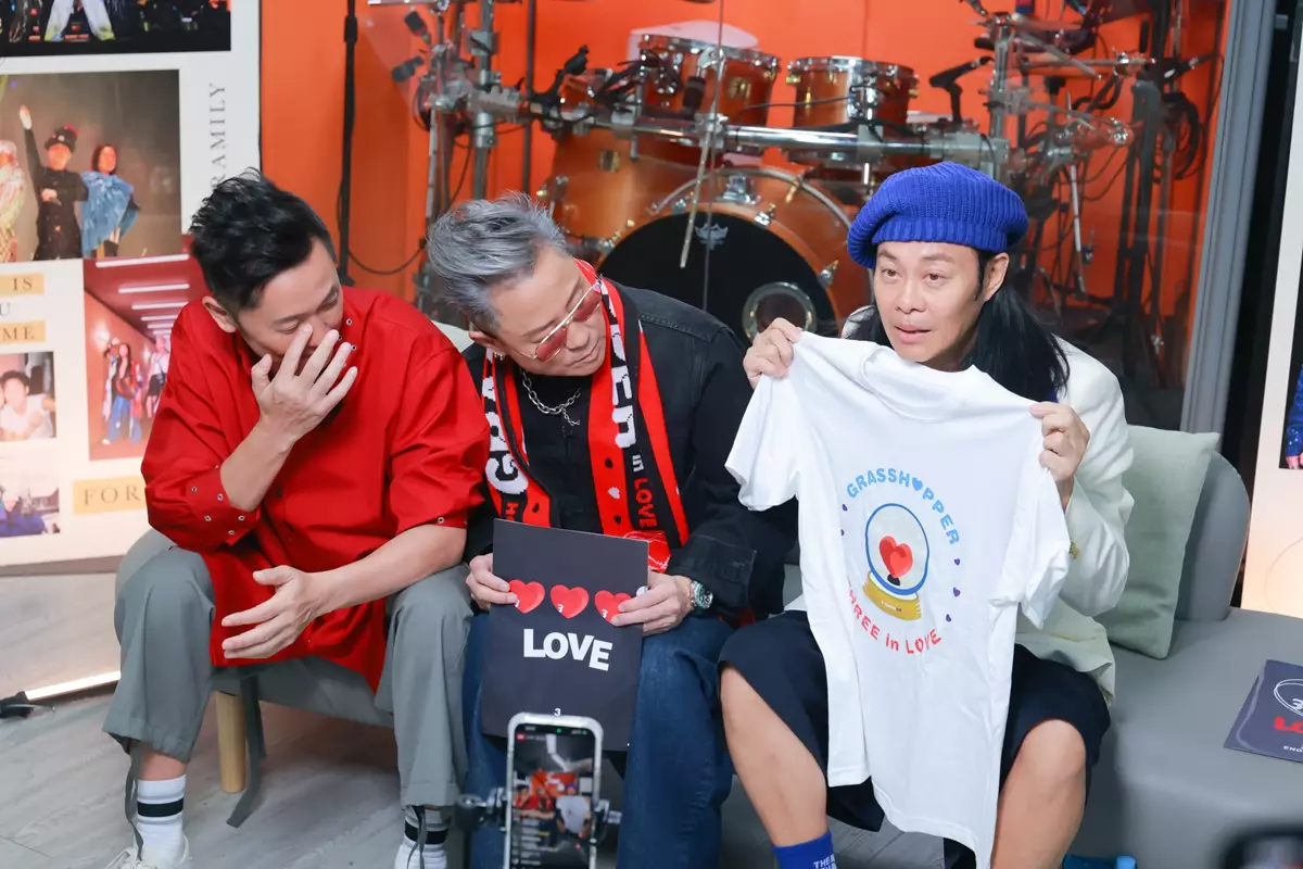 每次草蜢舉行演唱會,除了場內表演目不暇給,場外周邊亦琳瑯滿目,有型又貼心的設計,今年更會加入夾公仔和扭蛋機,定必再掀排隊潮。今次演唱會周邊有紅色圍巾、Tee、多款多色文件夾、彩色掛飾和水晶球等,喜慶感滿滿。蔡一智稱周邊推出白色tee,草蜢三子就有專屬大紅心圖案的黑色tee作呼應,豈料兩款tee曝光,即引起留言區騷動,Fans要求都要買到黑色款,連傑仔都幫口,蔡一智表示立即跟團隊商量加印。而「吉祥物」水晶球,蔡一智坦言製作繁複及成本高,所以只會非常限量發售。