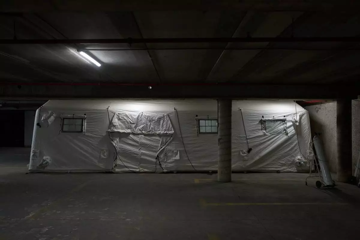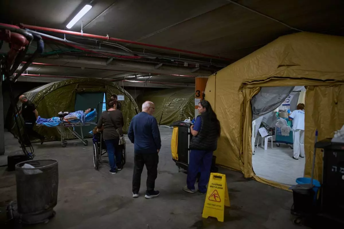 2026年3月17日周二,以色列拉馬特甘(Ramat Gan)示巴醫療中心(Sheba Medical Center)下方一個停車場內,設立了一個臨時急症病房,該處被用作避難所。(美聯社圖片/Oded Balilty) AP圖片