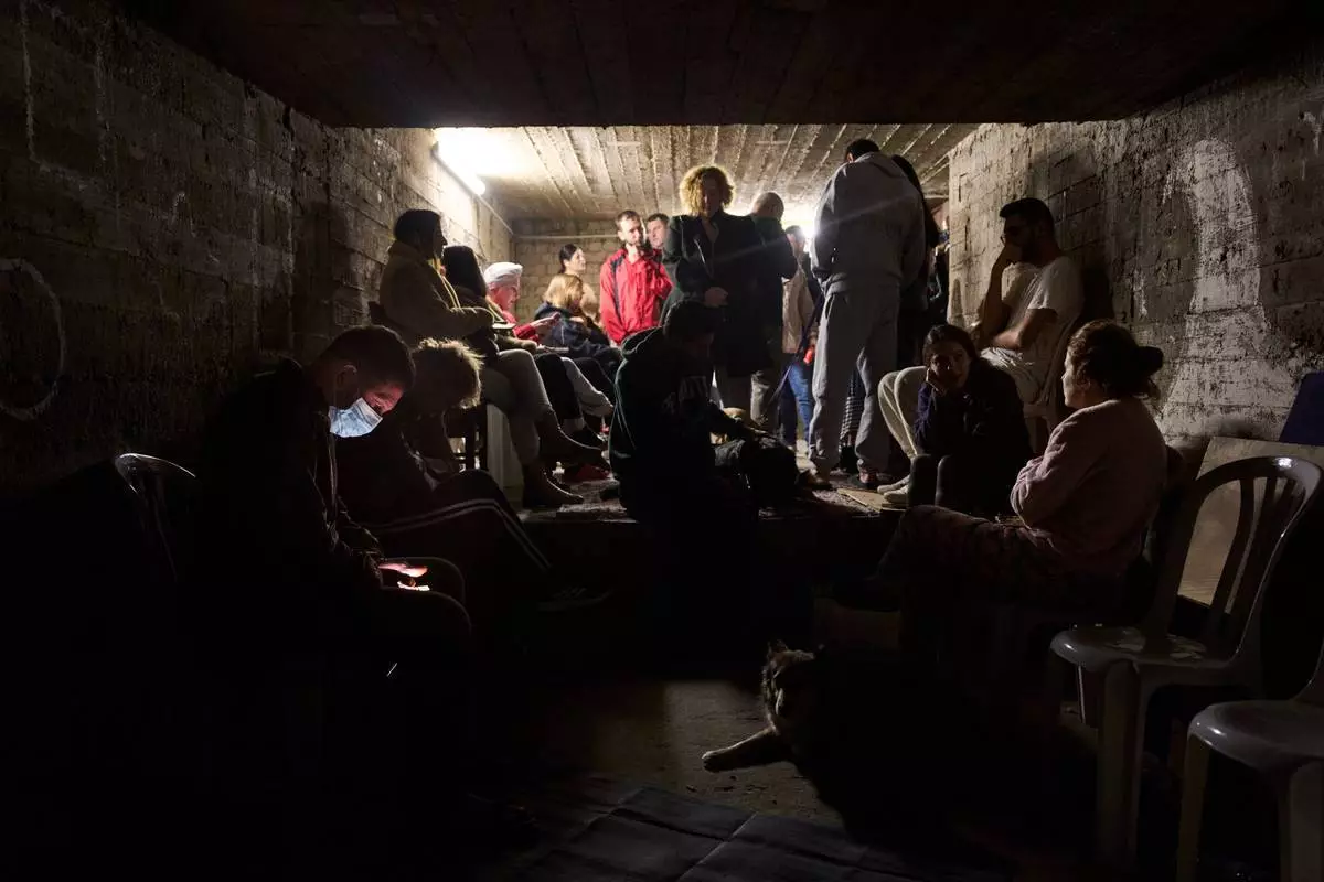 2026年3月22日周日,以色列拉馬特甘(Ramat Gan)一個防空洞內,人們聚集在一起,當時空襲警報正警告伊朗(Iran)導彈來襲。(美聯社圖片/Oded Balilty) AP圖片