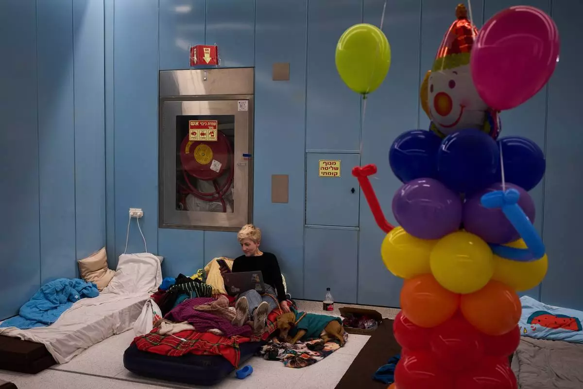 以色列的醫院在與伊朗開戰首日,迅速實施了地下緊急程序。在示巴醫療中心(Sheba Medical Center),一名職員在停車場樓層設立的臨時病房內吹泡泡,逗樂一名年輕病人。