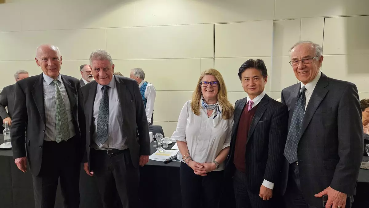 吳宏偉教授(右二)與英國岩土力學與工程學會主席Chaido Doulala-Rigby工程師(右三)及過往朗肯講座主講者,包括第32屆主講者Brian SIMPSON博士(右一)、第46屆主講者Lord Robert MAIR教授(左一)、第47屆主講者Antonio GENS教授(左二)合影。