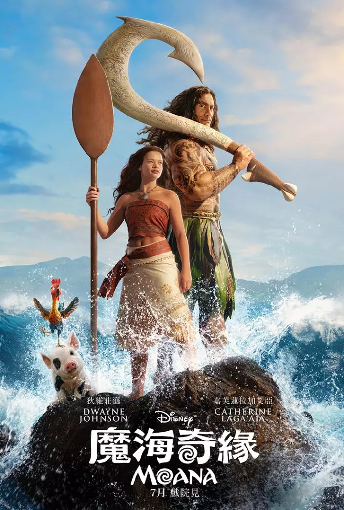 迪士尼繼《美女與野獸》、《阿拉丁》後,再施魔法,將人氣動畫《魔海奇緣》真人化搬上大銀銀!被海洋選中的海島少女慕安娜(嘉芙蓮拉加艾亞 飾)為了拯救族人,決定打破禁忌獨自出海冒險,其間遇上半神半人的英雄茂宜(狄維莊遜 飾),聯手對抗黑暗勢力,展開一場奇幻刺激的海上歷險!《魔海奇緣》真人版將於7月9日大銀幕上映。