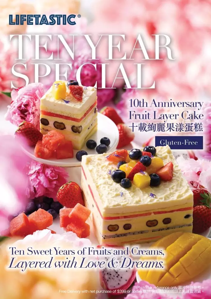身為香港以西瓜入饌的蛋糕先驅,我們的招牌「草莓西瓜蛋糕」將西瓜的清爽、草莓的鮮甜與烤杏仁的芳香完美結合,為傳統甜點帶來顛覆性的驚喜,更化作無數港人的甜蜜回憶。十年間,LIFETASTIC 不斷蛻變,從一口純粹的美味,昇華為代表香港精緻生活與健康美學的專屬標籤。今年十週年主題「拾載・盛放」,不僅是對過去堅持無麩質與新鮮食材的致敬,更是啟航未來「生活美學」願景的新篇章。