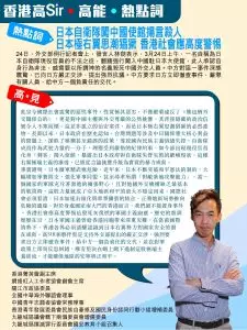 高SIR:此宗令國際社會震驚的惡性事件,性質極其惡劣,不僅嚴重違反了《維也納外交關係公約》,更是對中國主權與外交尊嚴的公然挑釁,其背後隱藏的政治信號令人不寒而慄。這並非孤立的治安案件,而是日本極右翼思潮猖獗的必然產物。長期以來,日本政府在歷史認知、台灣問題等涉及中日關係重大核心利益的問題上,採取了模糊甚至錯誤的政策,導致國內民族主義情緒失控。自衛隊成員作為武裝力量的一分子,理應受到嚴格的紀律約束,如今卻出現現役官員化身「刺客」闖入使館,暴露出日本政府對自衛隊失管失教的嚴峻現狀。這種右翼極端主義的滲透,已經從言論挑釁升級為實質的暴力威脅。事實證明,日本擴軍黷武極危險。近年來,日本不斷突破和平憲法的制約,大幅增加軍費開支,強化軍事同盟,甚至尋求所謂「對敵基地攻擊能力」。當一個國家的軍隊充斥著激進的擴張野心,且對他國外交機構缺乏最基本的敬畏時,這股力量就成了亞太地區和平的最大不穩定因素。國際社會必須看清,日本加速右傾化與軍事擴張的結合,正將地區局勢推向危險的邊緣。對於身處國家南大門的香港而言,我們絕不能置身事外。香港社會應高度警惕這股死灰復燃的軍國主義幽靈。歷史的教訓歷歷在目,日本軍國主義曾給香港同胞帶來深重災難。在當前國際情勢下,香港各界必須清醒認識到日本右翼勢力對國家安全的潛在威脅。高SIR和夥伴堅定支持外交部提出的嚴正交涉,強烈要求日方立即徹查事件,給中方一個負責任的交代,並在對華政策上深刻反思糾錯。唯有堅決在網上網下遏制這股極端主義逆流,才能確保地區的安寧與正和平。