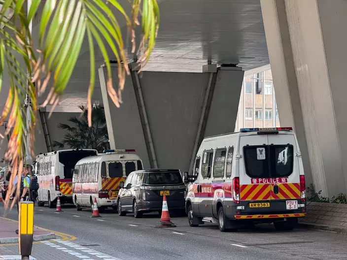 警方在庭外佈防。巴士的報記者攝