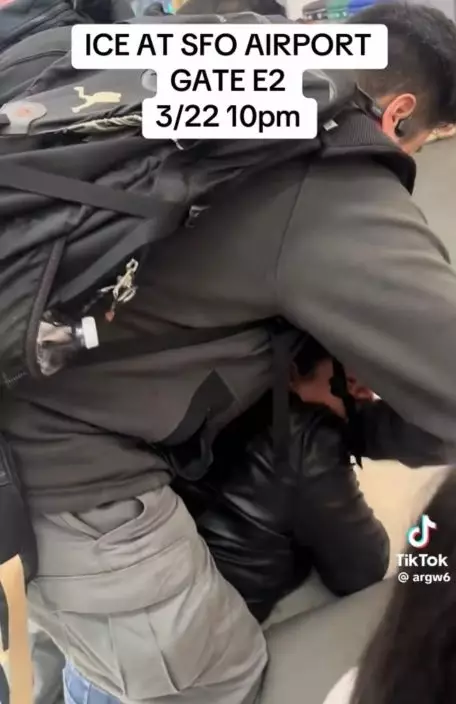 3月21日晚間10時,美國移民及海關執法局(ICE)便衣人員於三藩市國際機場3號客運大樓拘捕一名女子。影片可見,多名便衣執法人員將一名正在哭泣的女子鎖上手銬,而她的女兒則站在旁邊哭泣,場面令人關注。現場也有多名乘客拿出手機拍攝並與執法人員理論,有人更高聲斥責事件「不符合美國精神(This is un-American)」,相關影片迅速引發輿論關注。
