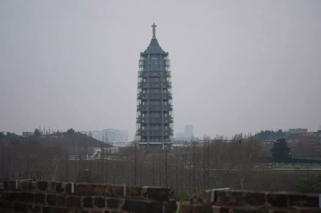 從中華門城牆遠眺,大報恩寺琉璃塔與外秦淮河上的畫舫交相輝映,構成南京古城最具代表性的「山水城林」景觀。巴士的報記者攝