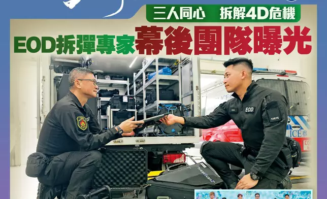 陳光鴻說:「No.1雖然經常在鎂光下,但鏡頭外的No.2和No.3也絕非配角,對保障No.1以至現場人員安全尤關重要。行動中,當No.1評估現場環境後,會先由No.2嘗試操控拆彈機械人將爆炸品銷毁,No.3則負責團隊後勤支援,確保兩位所需物資到位,無後顧之憂。待No.2初步消除現場風險後,No.1才會靠近危險品。現實往往與電影不同——沒有簡單的紅線藍線運氣選擇,而是要對每一項風險逐層拆解,才能安全地化險為夷。」