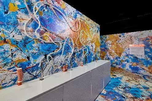 是次展覽的十個沉浸式展廳各具特色,並與本地知名藝術家合作。體驗以充滿新普普藝術活力的「藝術大爆發!」展廳揭開序幕,訪客可於夾公仔機夾取普普氣球狗啫喱。
