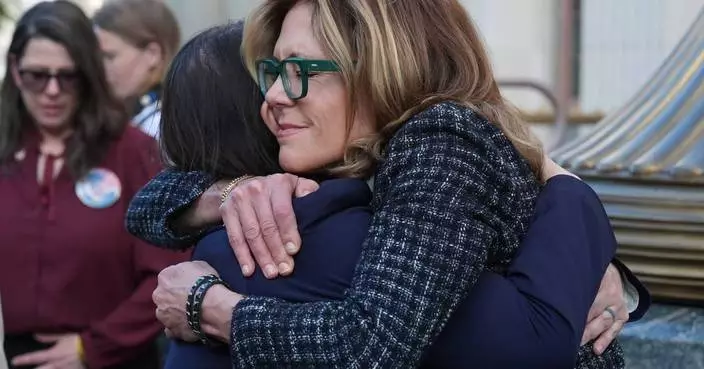 在法院外,有支持案件原告的民眾在知道裁決後相擁。AP圖片