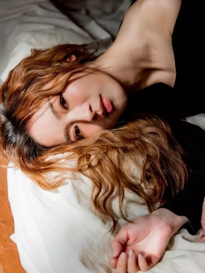 Yuki一改甜美形象,以曲髮襯黑絲上陣!